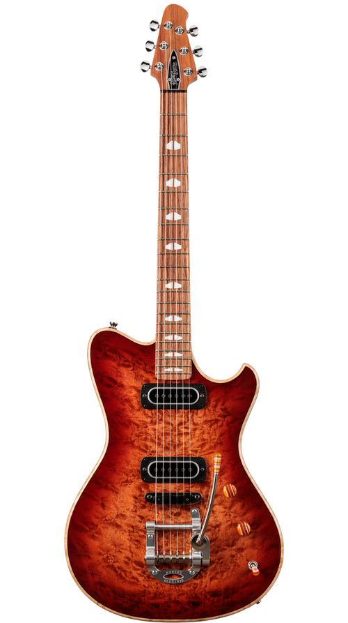 INSPIRED BY SAN DIEGO'S BLEND OF SURF, SKATE, AUTO AND MUSIC CULTURES, THE A-TYPE RE-IMAGINES ELECTRIC GUITAR DESIGN INTO A SOUND AND FEEL ALL ITS OWN. THE TRUSSED, SLIM HOLLOW BODY IS REMARKABLY LIGHTWEIGHT AND UNIQUELY VOICED TO COMBINE RESONANCE, SUSTAIN AND FEEDBACK SUPPRESSION. AN ASYMMETRICAL FRETBOARD RADIUS MAKES PLAYING AND BENDING STRINGS EFFORTLESS AND PRODUCES A MORE CONSISTENT TONAL CHARACTER. A NEW SINGLE-COIL PICKUP DESIGN BLENDS WARMTH AND FIDELITY (FF42) WITH A BRIGHTER AND PUNCHIER PICKUP (PF42) OPTION ALSO AVAILABLE. THE PROPRIETARY CAMTAIL TREM/VIBRATO SYSTEM KEEPS STRINGS IN TUNE WITH EACH OTHER ON DIVES AND BENDS. EVERY DESIGN FEATURE WORKS TO REVEAL A PLAYING EXPERIENCE UNLIKE ANY OTHER — ONE THAT FREES YOU UP TO SOUND MORE LIKE YOU.